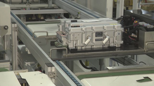 株洲力慧科技有限公司生产车间,一台台新能源汽车的PEU从智能制造生产线下线。