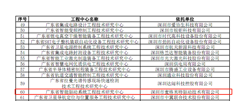 近日,由广东省科学技术厅发布的《广东省科学技术厅关于认定2019年度广东省工程技术研究中心的通知》(粤科函产字【2020】141号),经专家评审和网上公示,九游会老哥俱乐部子公司驱动技术建设的“广东省智能驱动系统工程技术研究中心” 被认定为“2019年度广东省工程技术研究中心”。这是对我司在驱动系统领域创新能力和自主研发实力的肯定与支持,今后九游会老哥必备的交流社区_俱乐部将一如既往深耕行业,持续加强研发投入,培养科技创新人才,大力推进技术创新,深刻落实“横向穿边,纵向到底”的经营战略,为客户创造更大的价值!