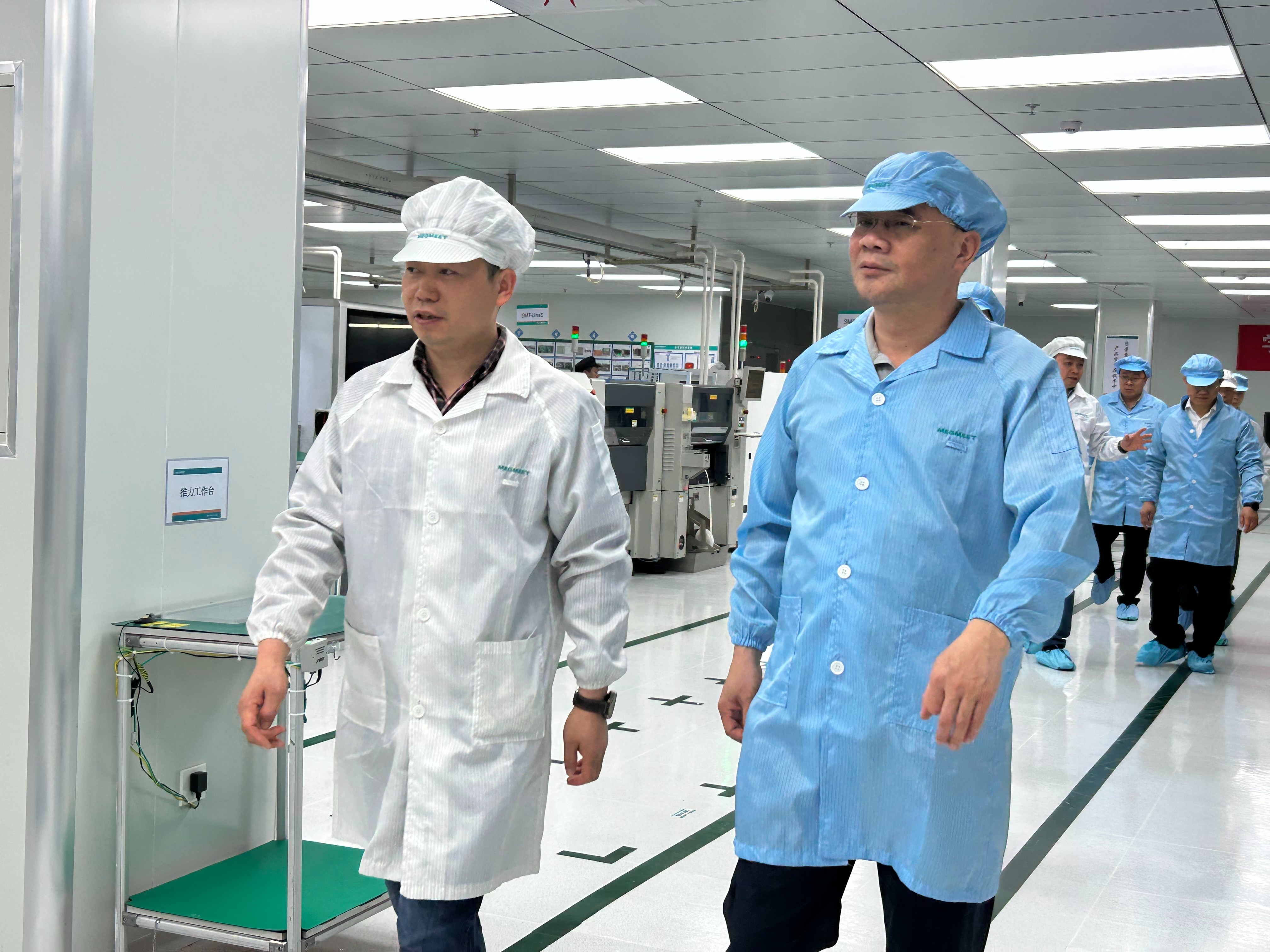4月18日,南瑞集团副总经理、党委委员华定忠携南瑞集团生产物资部、生产中心、相关产业单位等一行领导,莅临九游会老哥必备的交流社区_俱乐部 (以下简称:麦米电气)株洲全球制造基地、长沙全球研发中心进行调研,麦米电气集团董事长童永胜、微朗科技总经理张晓达、株洲制造中心总经理王信杰等全程陪同。