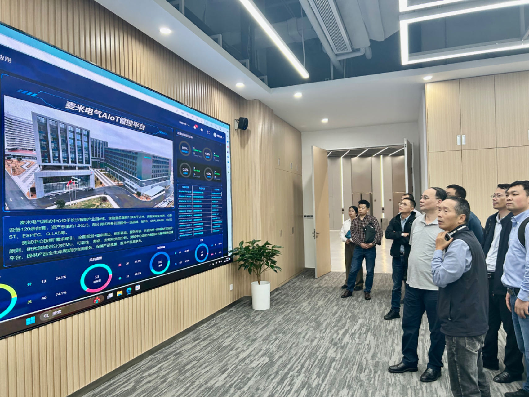 随后一行人通过对麦米电气长沙全球研发中心全场景展示中心及测试楼实验室进行实地参观,详细了解麦米电气的经营情况、核心技术、研发创新、业务领域分布及版图拓展,近距离感受麦米电气完善的测试能力。