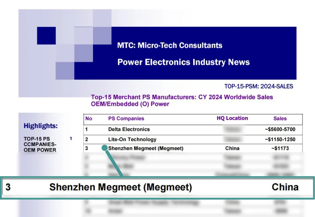 近日全球知名电源市场调查机构Micro-Tech Consultants(以下简称:MTC)公布了2024年度全球电源供应商TOP15榜单。