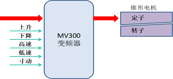 随着工程上需要越来越多快速定位的需求以及降低后续客户适用维护的成本,变频电动葫芦比率正在迅速提高,MV300作为一款高性能矢量控制变频器,其低频力矩大,过载能力强,能够很好的满足电动葫芦锥形电机的要求。